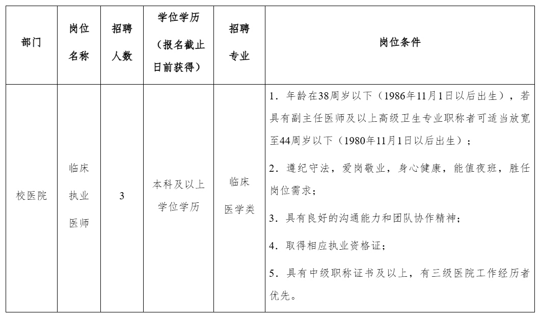 擬公開招聘醫(yī)務工作人員3名,具體崗位及相關(guān)條件要求詳見下表: