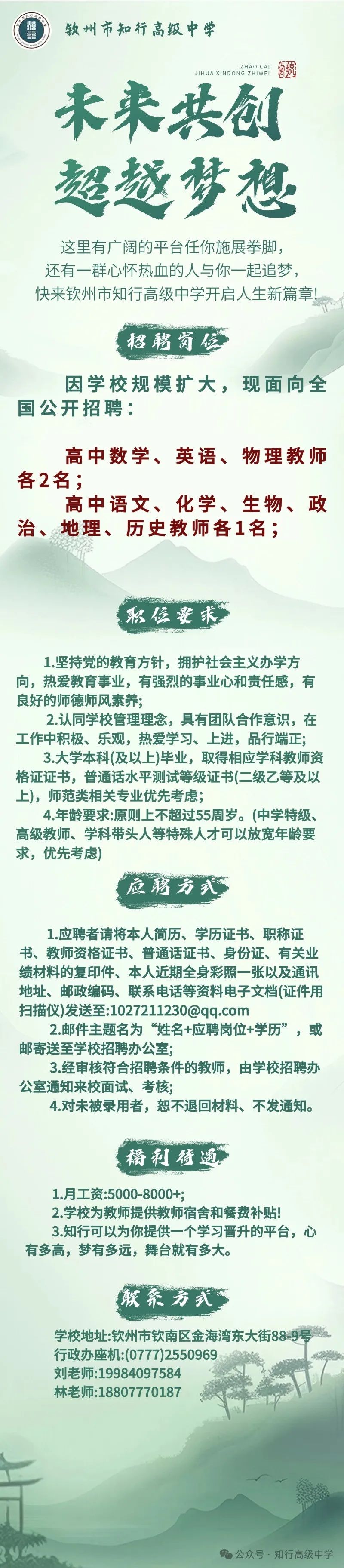 欽州市知行高級中學招聘公告