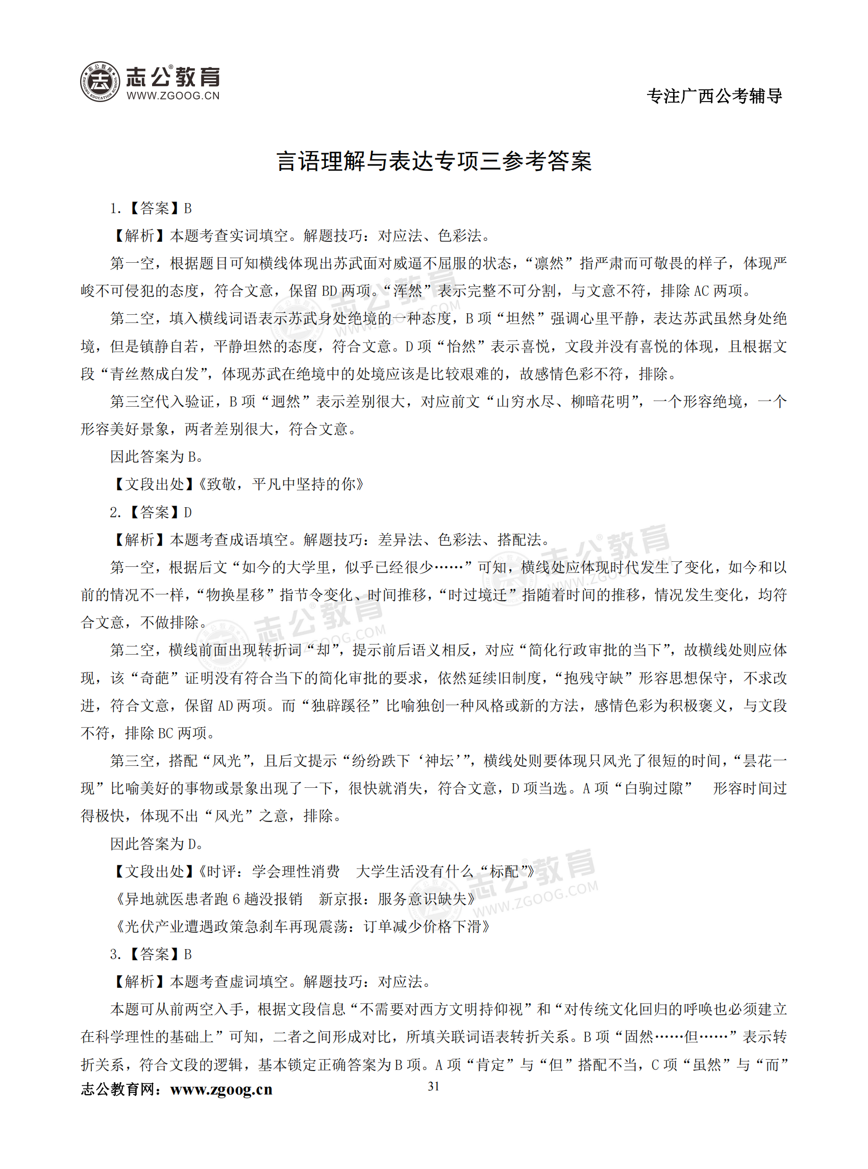 【公考模塊練習】言語理解題三(答案)