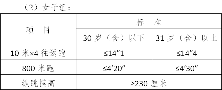 (三)面試體能測試三項全部達標的,視為合格
