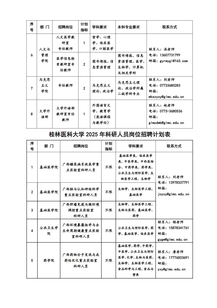 (二)各部門聯(lián)系方式見:桂林醫(yī)科大學(xué)各崗位招聘計(jì)劃表。