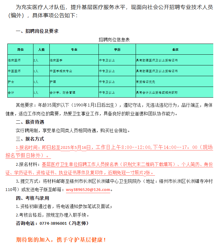 2025年梧州市長(zhǎng)洲區(qū)長(zhǎng)洲鎮(zhèn)中心衛(wèi)生院公開招聘公告