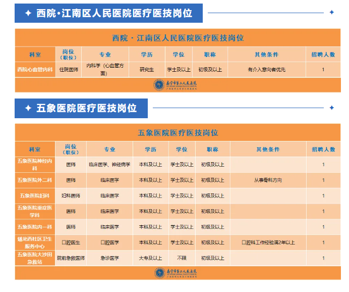 以上崗位均享受醫(yī)院科研獎勵、培訓(xùn)進(jìn)修、晉升職務(wù)職稱等權(quán)利,以及五險(xiǎn)一金、用餐補(bǔ)助、帶薪年休假、工會福利等待遇。