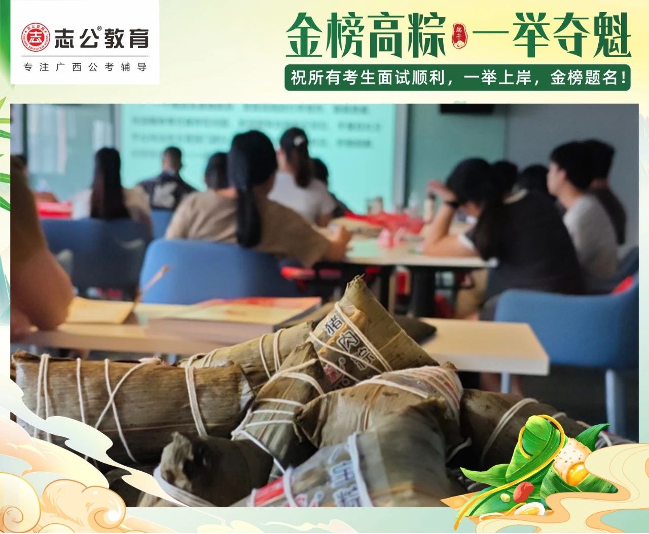 我們深知每一位學(xué)員為夢(mèng)想努力奮斗的不易。在這個(gè)端午節(jié),志公教育特別為地市學(xué)員準(zhǔn)備了剛出爐的新鮮粽子。希望大家在品嘗粽子的同時(shí),能感受到我們的支持與鼓勵(lì),在接下來的考試中一舉高 “粽”,實(shí)現(xiàn)自己的夢(mèng)想。