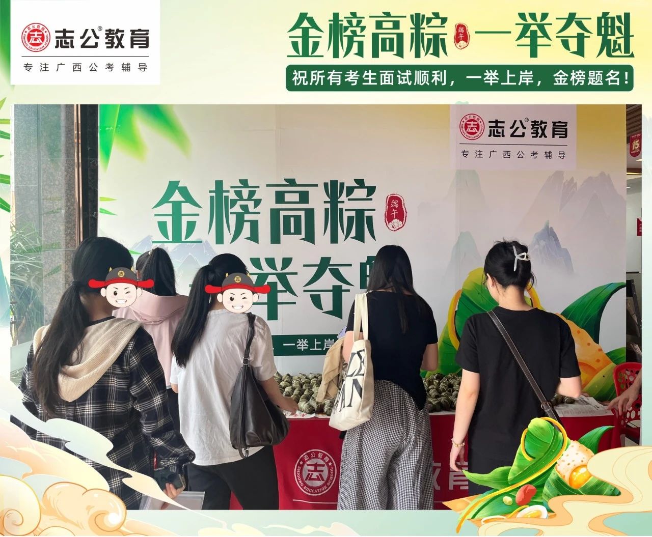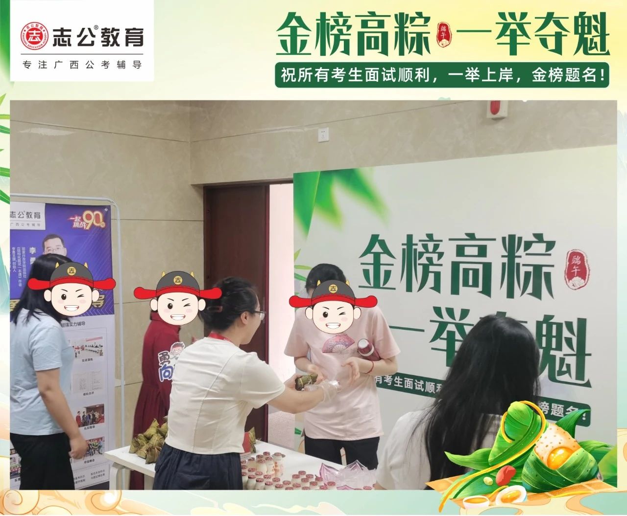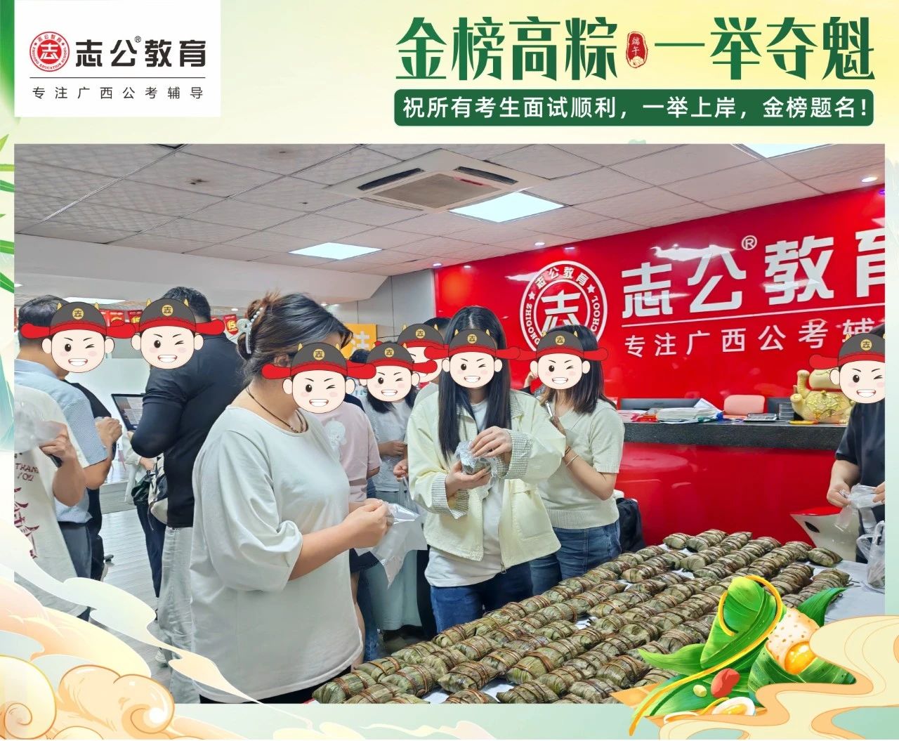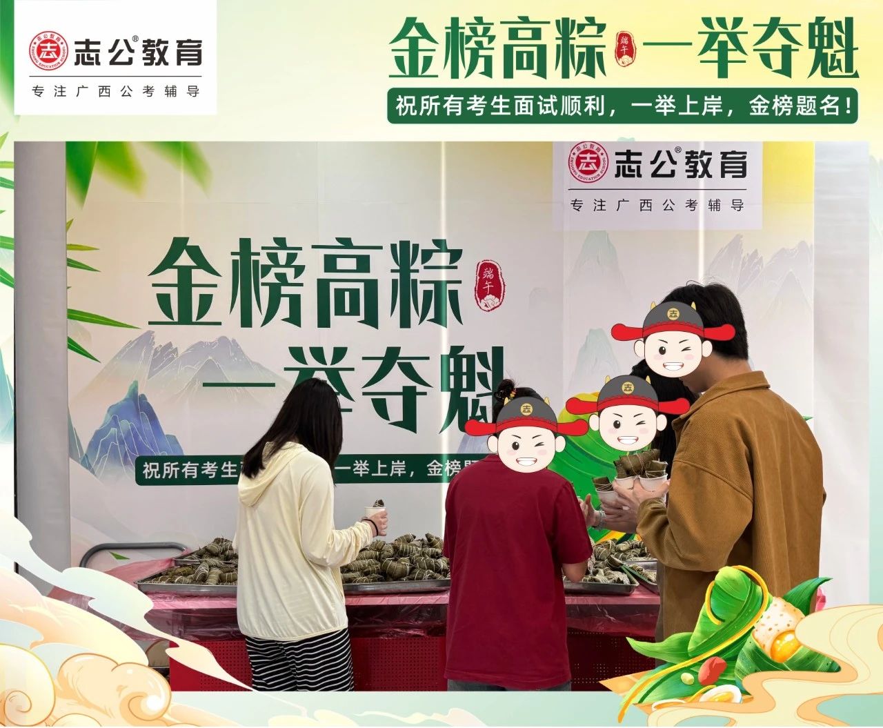 最后,再次祝愿大家端午節(jié)安康,六一兒童節(jié)快樂!愿志公教育每位員工在雙節(jié)的喜慶氛圍中,收獲滿滿,幸福常伴!也愿志公教育每位學(xué)員吃上粽子一舉高“粽”,實(shí)現(xiàn)自己的公職夢(mèng)想!