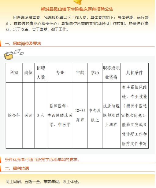 原文標題:柳城縣鳳山鎮(zhèn)衛(wèi)生院臨床醫(yī)師招聘公告