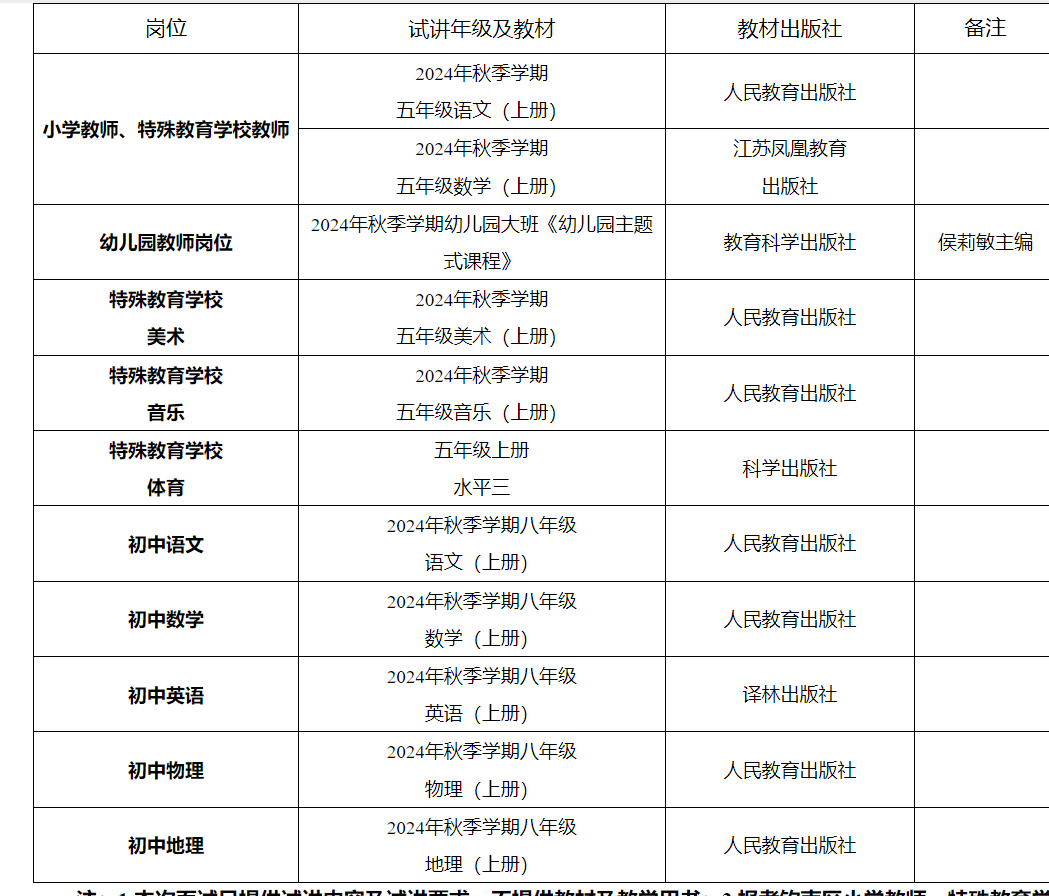 注:1.本次面試只提供試講內(nèi)容及試講要求,不提供教材及教學(xué)用書;2.報(bào)考?xì)J南區(qū)小學(xué)教師、特殊教育學(xué)校教師崗位的考生可自由選擇語文或數(shù)學(xué)進(jìn)行試講。