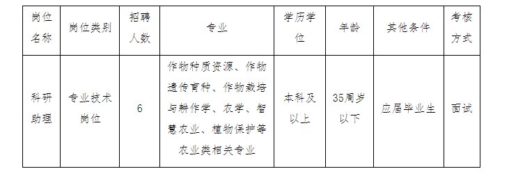 我所設(shè)有4個(gè)科室、1個(gè)種質(zhì)庫(kù)、1個(gè)中心和10個(gè)研究團(tuán)隊(duì)。根據(jù)工作需要,現(xiàn)面向社會(huì)公開(kāi)招聘編制外工作人員6名。現(xiàn)將有關(guān)事項(xiàng)公告如下: