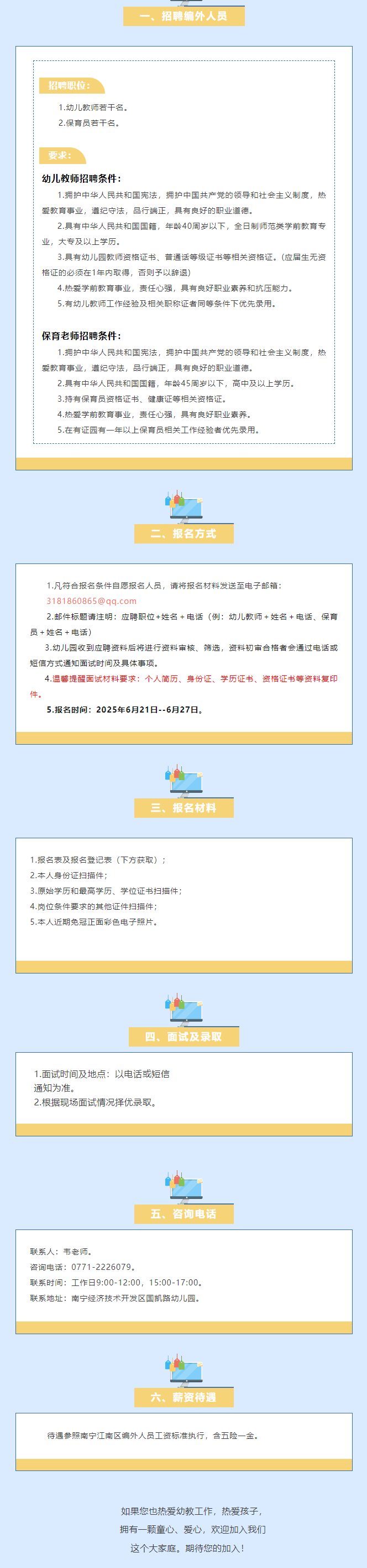 2025年南寧經(jīng)濟(jì)技術(shù)開發(fā)區(qū)國(guó)凱路幼兒園招聘編外人員若干人