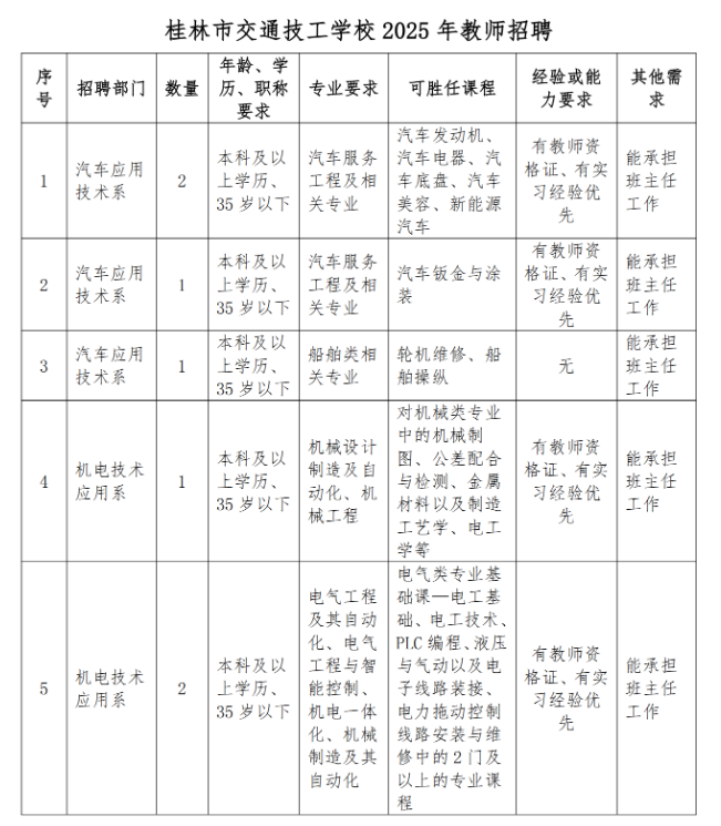 原文標(biāo)題:桂林市交通技工學(xué)校2025年教師招聘公告