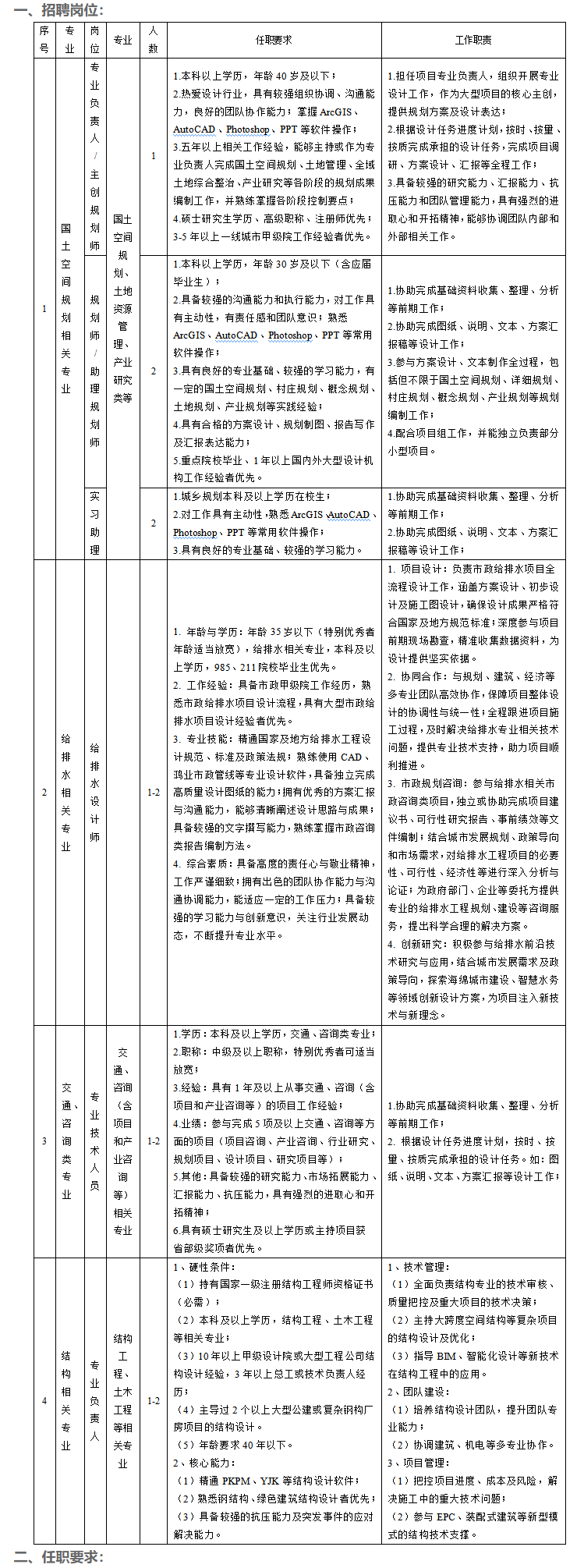 4.應(yīng)聘技術(shù)人員具有一線城市甲級(jí)設(shè)計(jì)院3年以上工作經(jīng)歷者優(yōu)先。