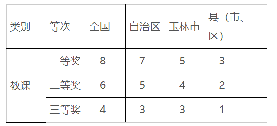 (5)現(xiàn)場(chǎng)教課比賽獲獎(jiǎng):參加教育行政部門(mén)或業(yè)務(wù)部門(mén)逐級(jí)選拔的縣以上的教課比賽獲得一、二、三等獎(jiǎng)勵(lì)給予計(jì)分。此項(xiàng)最高不超過(guò)10分。具體計(jì)分如下: