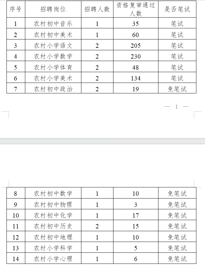 根據(jù)《桂林市雁山區(qū)2025年特崗教師招聘公告》要求“筆試按實際通過資格復審人數(shù)開考;招聘崗位資格復審通過人數(shù)不足20人免筆試,資格復審通過人數(shù)20人以上(含20人,研究生及以上學歷不包含在內(nèi),研究生及以上學歷免筆試),需進行筆試。”經(jīng)現(xiàn)場資格復審,桂林市雁山區(qū)2025年特崗教師招聘筆試、免筆試學科崗位情況如下: