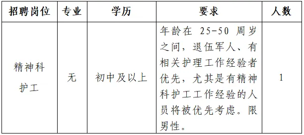 為了給我院精神科患者提供更優(yōu)質(zhì)、貼心的照護(hù)服務(wù),現(xiàn)面向社會(huì)公開招聘精神科護(hù)工一名,期待有愛(ài)心、有責(zé)任心的你加入我們的團(tuán)隊(duì),共同為患者的健康保駕護(hù)航。具體事宜公告如下:
