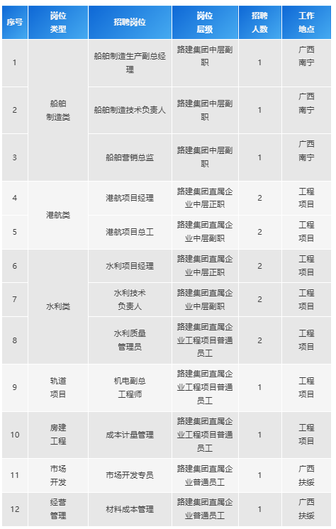 根據(jù)廣西路建集團發(fā)展需要,現(xiàn)面向社會公開招聘關鍵崗位人才,誠邀有志之士與廣西路建集團共創(chuàng)美好未來。