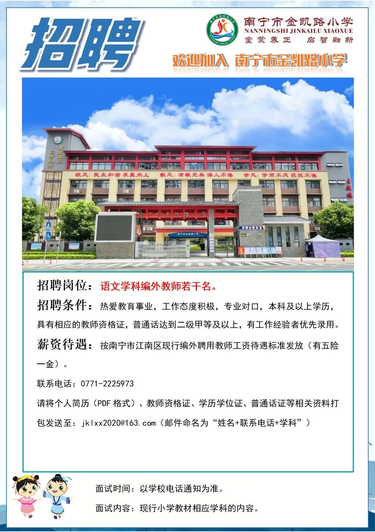 2025年南寧市金凱路小學(xué)招聘語(yǔ)文學(xué)科編外教師若干人