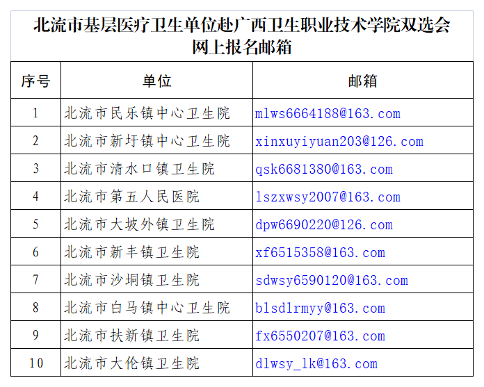 4.北流市基層醫(yī)療衛(wèi)生單位赴廣西衛(wèi)生職業(yè)技術(shù)學(xué)院雙選會網(wǎng)上報(bào)名郵箱