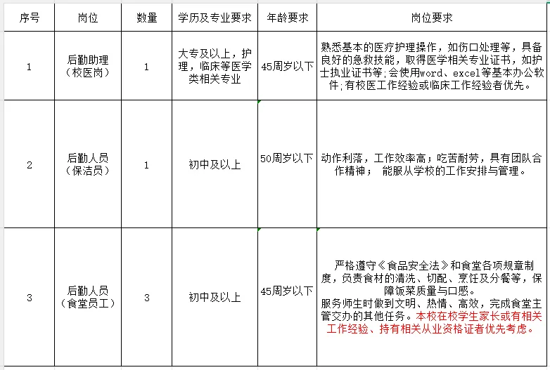 3.具有相應(yīng)崗位文化程度,身體健康、手腳敏捷、具有團隊合作精神,能服從學(xué)校安排及管理。