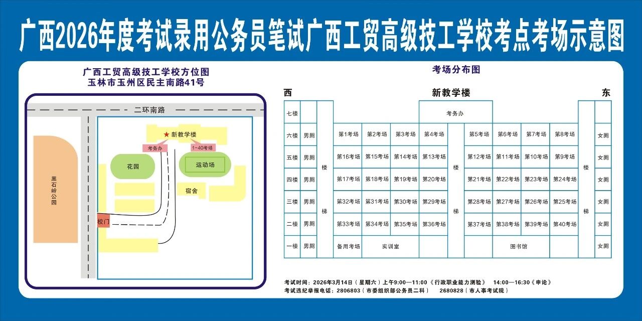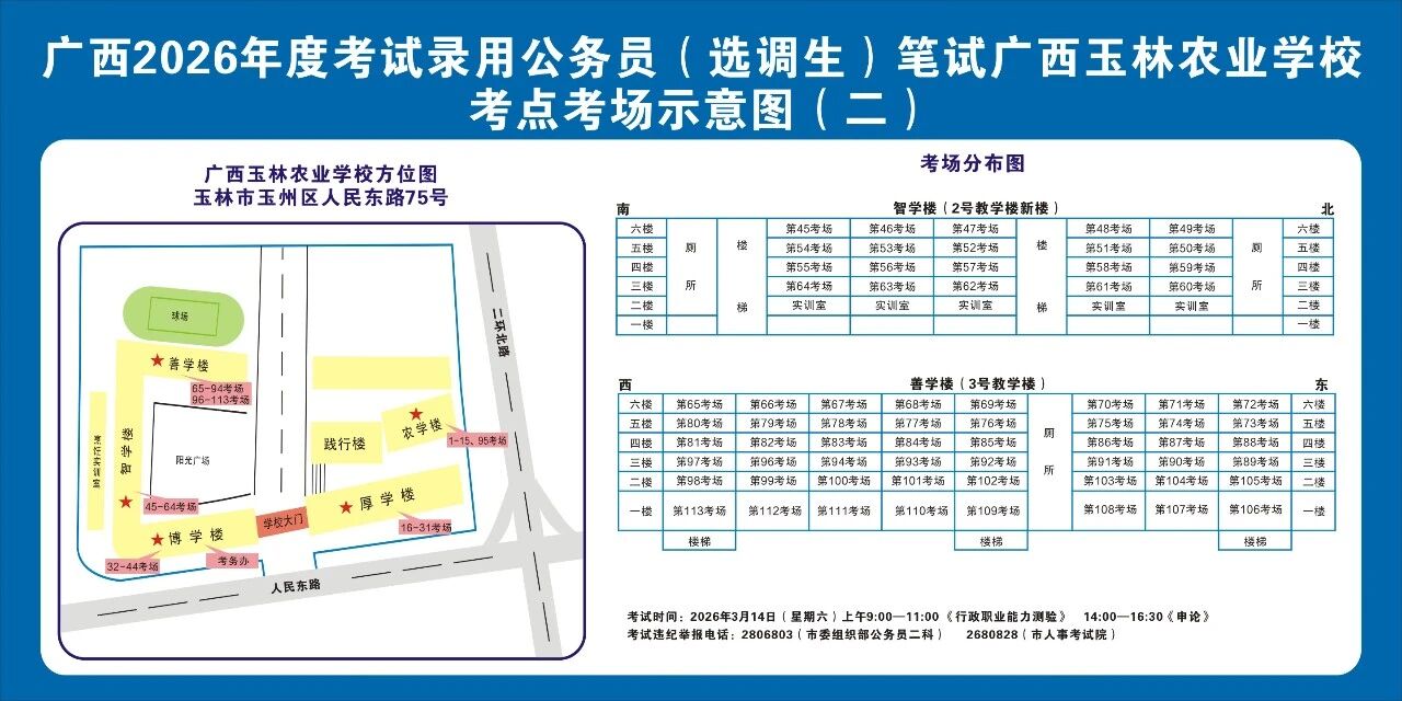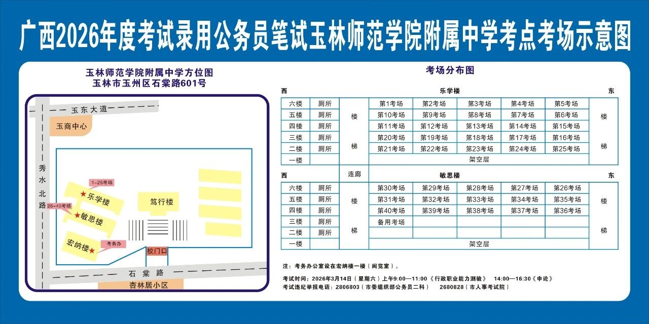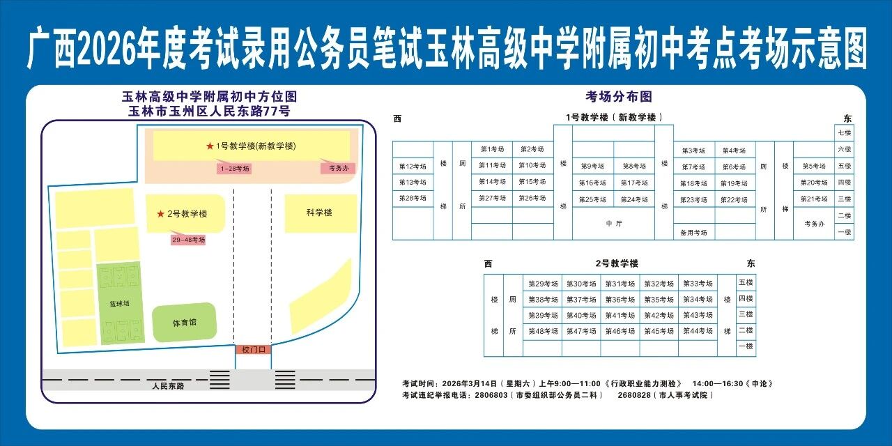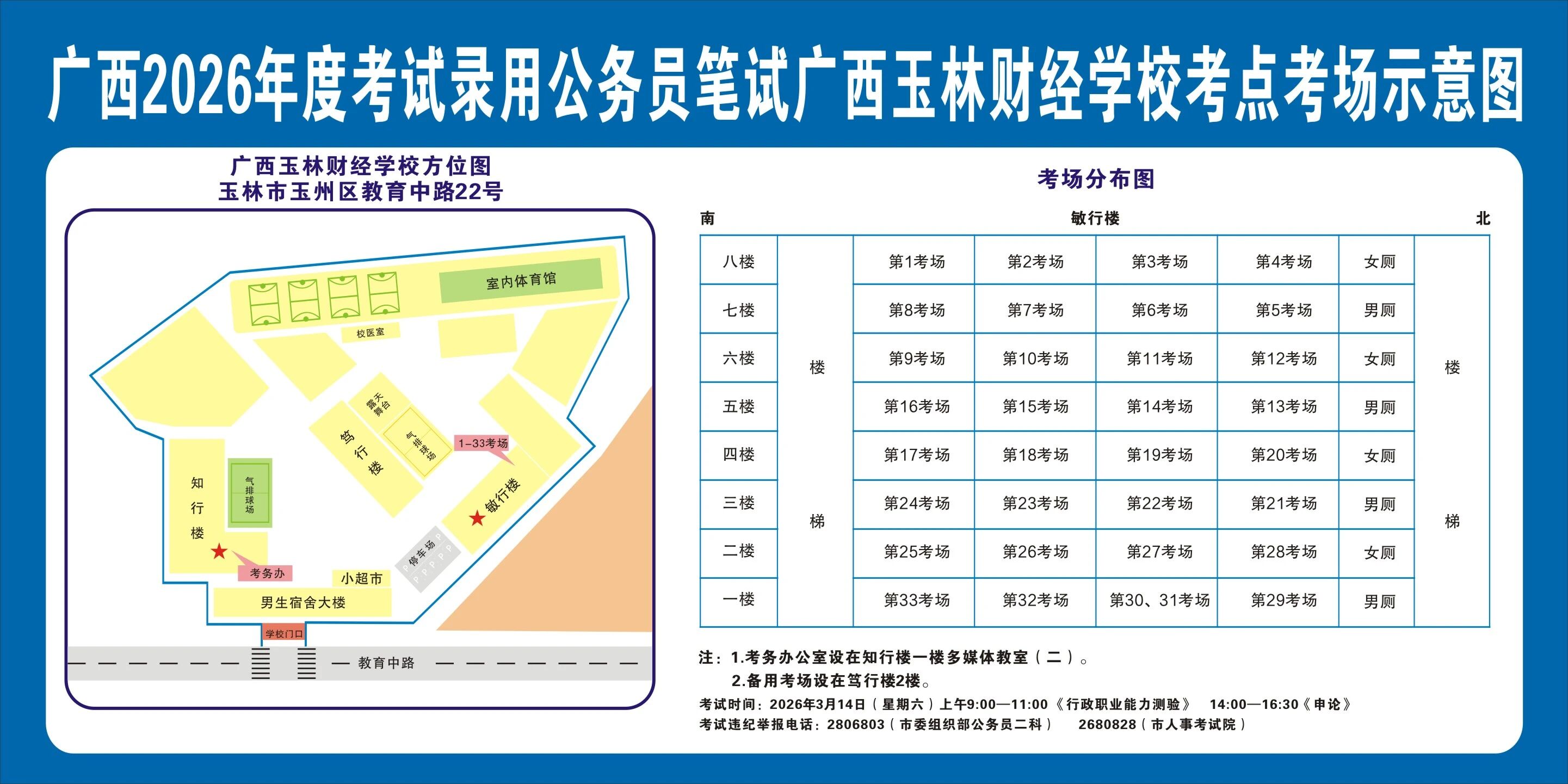 廣西2026年度考試錄用公務(wù)員(選調(diào)生)筆試將于3月14日舉行,為進一步提升玉林考區(qū)服務(wù)保障質(zhì)量,現(xiàn)就有關(guān)注意事項提示如下,請廣大考生做好應(yīng)試準(zhǔn)備工作,準(zhǔn)確掌握考試時間、考點地址及相關(guān)注意事項。