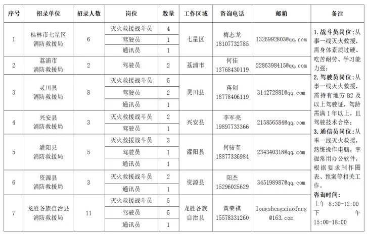 為進一步加強全市消防救援力量建設(shè),提升綜合應(yīng)急救援能力,按照公平公正、平等自愿、競爭擇優(yōu)的原則,桂林市消防救援局面向社會公開招錄政府專職消防員,現(xiàn)將有關(guān)事項公告如下: