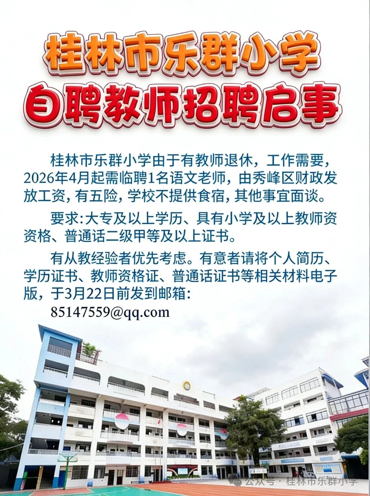 原文標(biāo)題:桂林市樂(lè)群小學(xué)自聘教師招聘啟事
